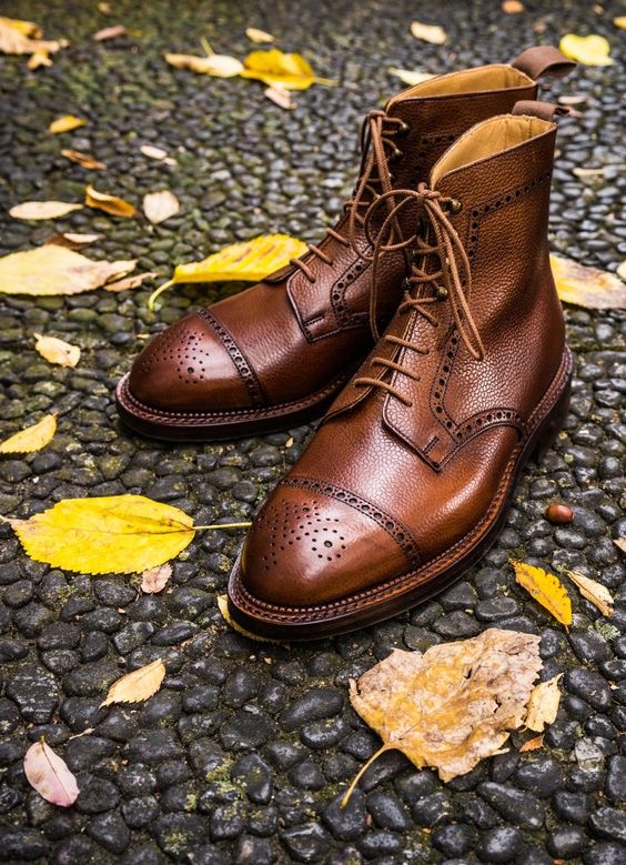Men Handmade Brown Leather Brogue Boots with lace up closure, Ankle Boots