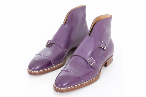 Handmade Purple Color Cap Toe Double Buckle Ankle High Boot