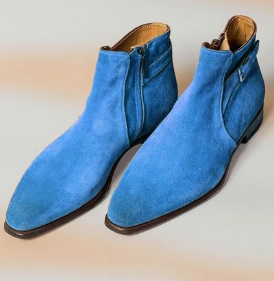 Handmade Blue Suede Zip Ankle Boots