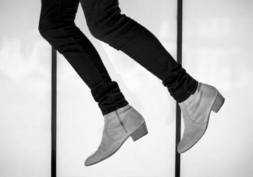 Handmade Men light gray ankle boots, Men Suede leather side zip boots, Men boots