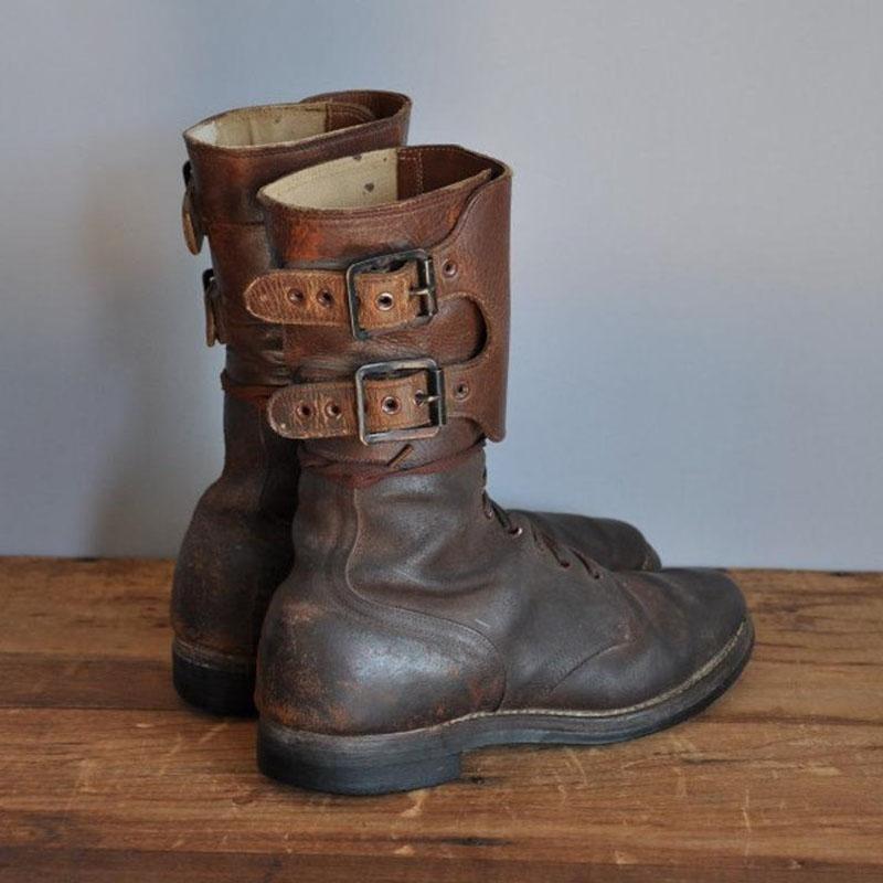 Handmade Cowhide Leather Mens Buckle Army High Boots