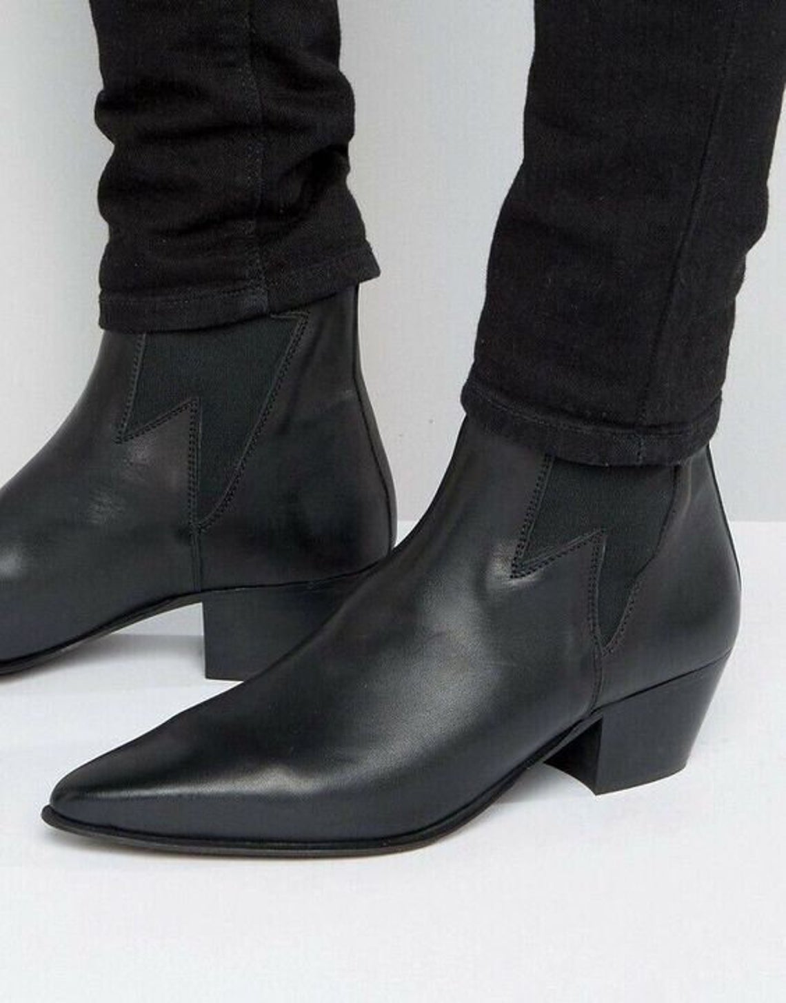 New Men's Handmade Black Pure Leather Chelsea Ankle High Dress Boots