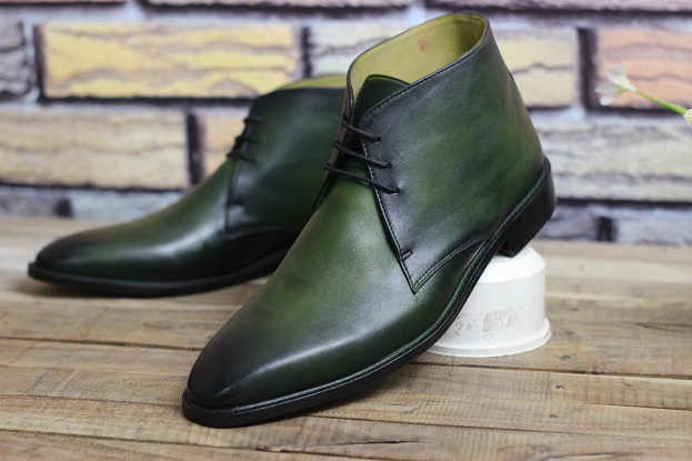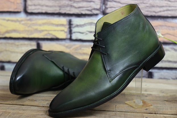New Men's Handmade Shoes Green Leather Ankle High Stylish Chukka Dress & Formal Wear Boots