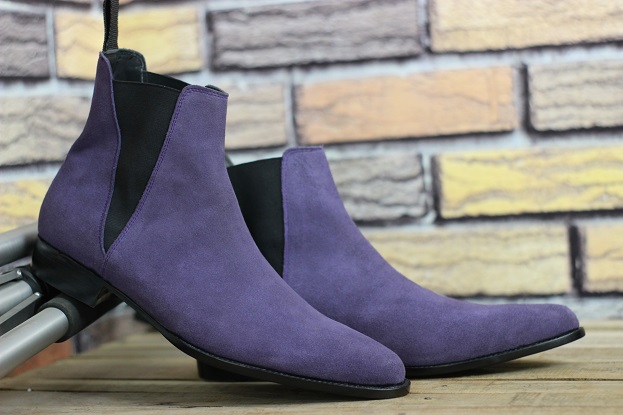 Men's New Handmade Leather Ankle High Purple Suede Stylish Chelsea Dress & Formal Wear Boots