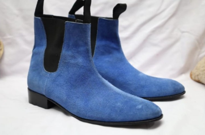 Blue Suede Leather Handmade Chelsea Boot