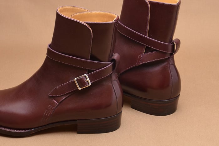 Men Jodhpur Rounded Buckle Handmade High Ankle Genuine Leather Boots