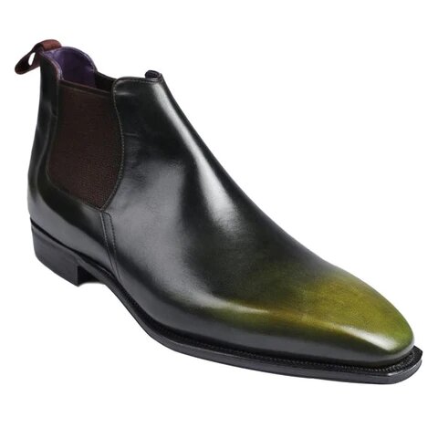 Dark Shade of Green with a Yellowish or Olive Undertone Men Calf Patina Chelsea Boot