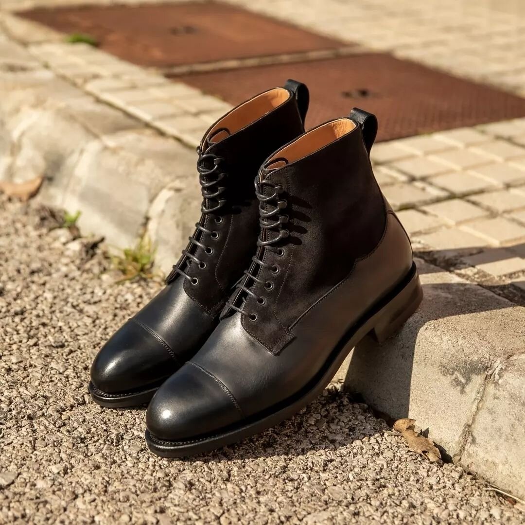 Handmade Black / Calf Suede Leather Ankle High Boot, Mens Lace up Boot , Dress Boot