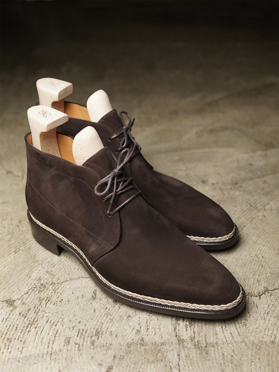 Men Dark Brown Suede Leather Chukka Boot Norwegian-Welted Construction.