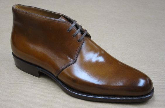 3-Eyelet Chestnut Brown Crust Calf Leather Men Dress Boot