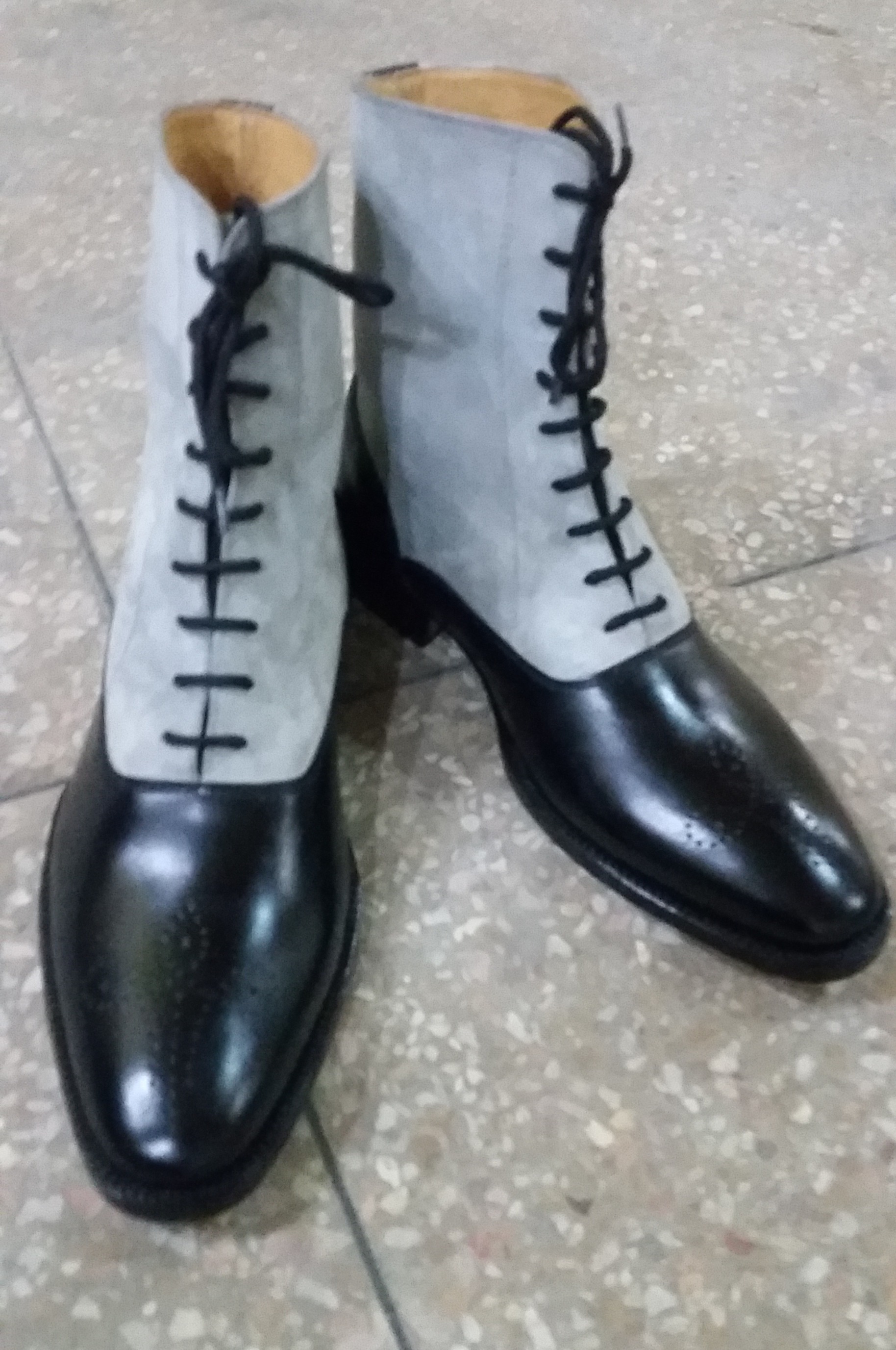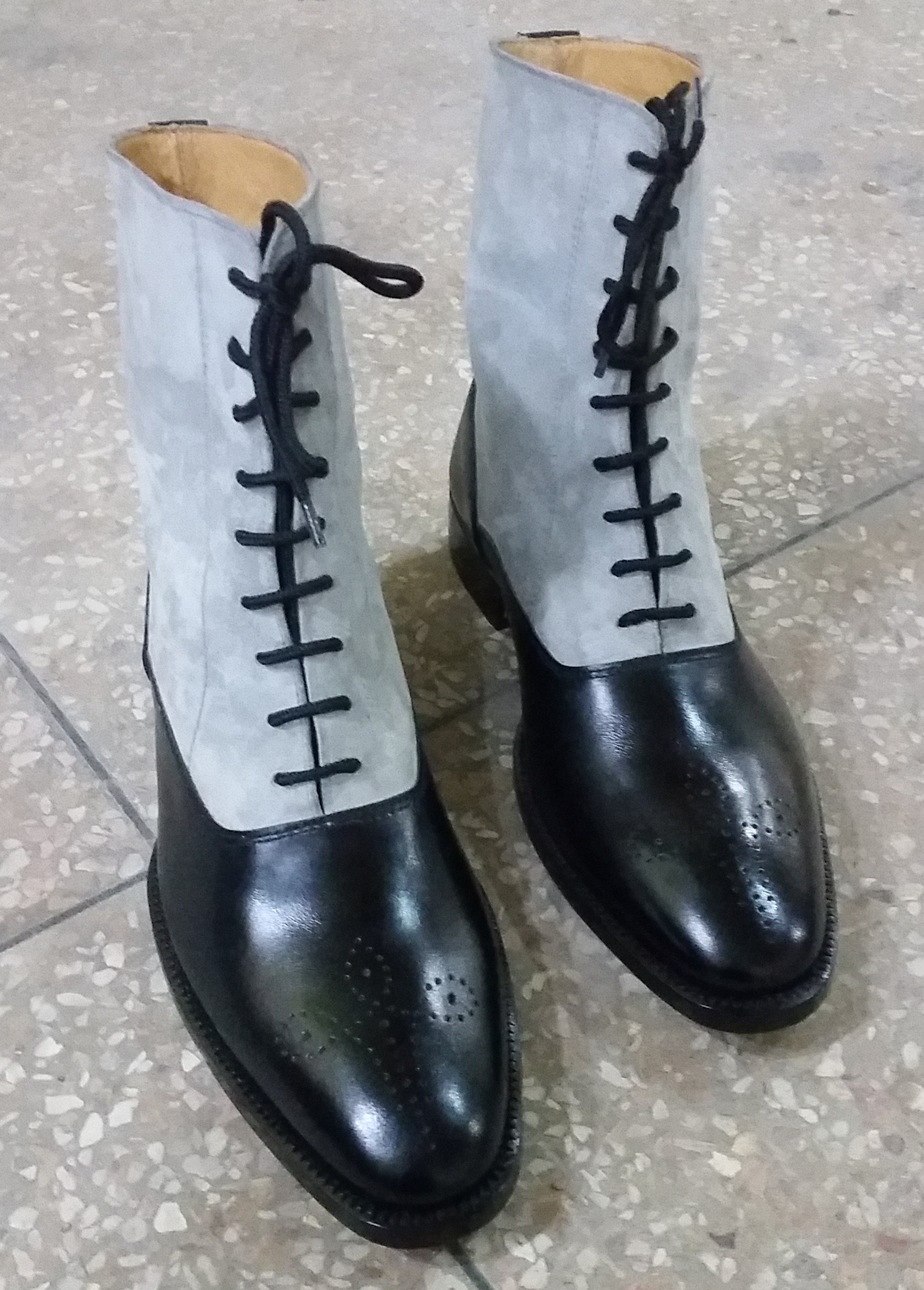 Black Calf and Grey Suede Leather Ankle High Dress Lace up Boot