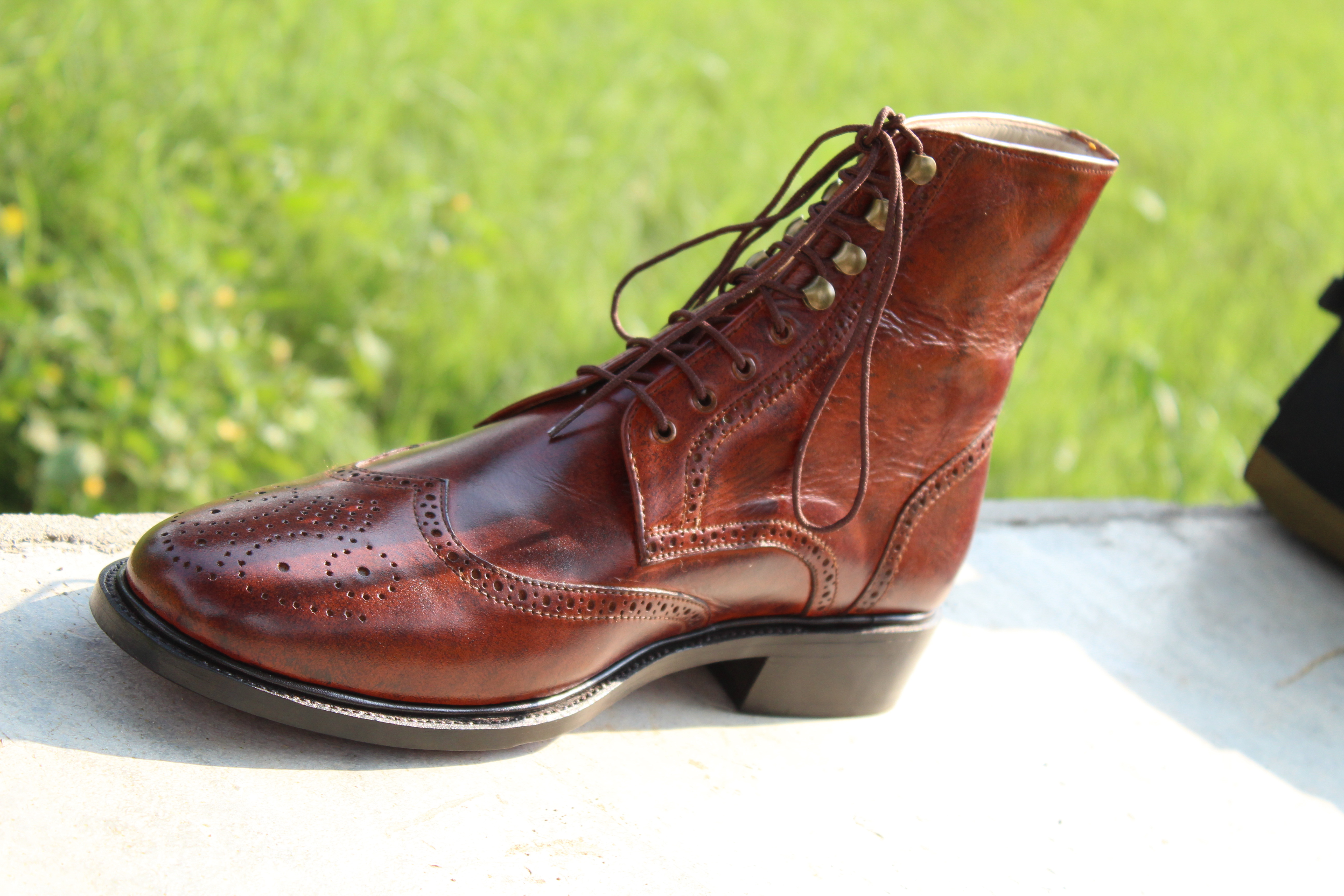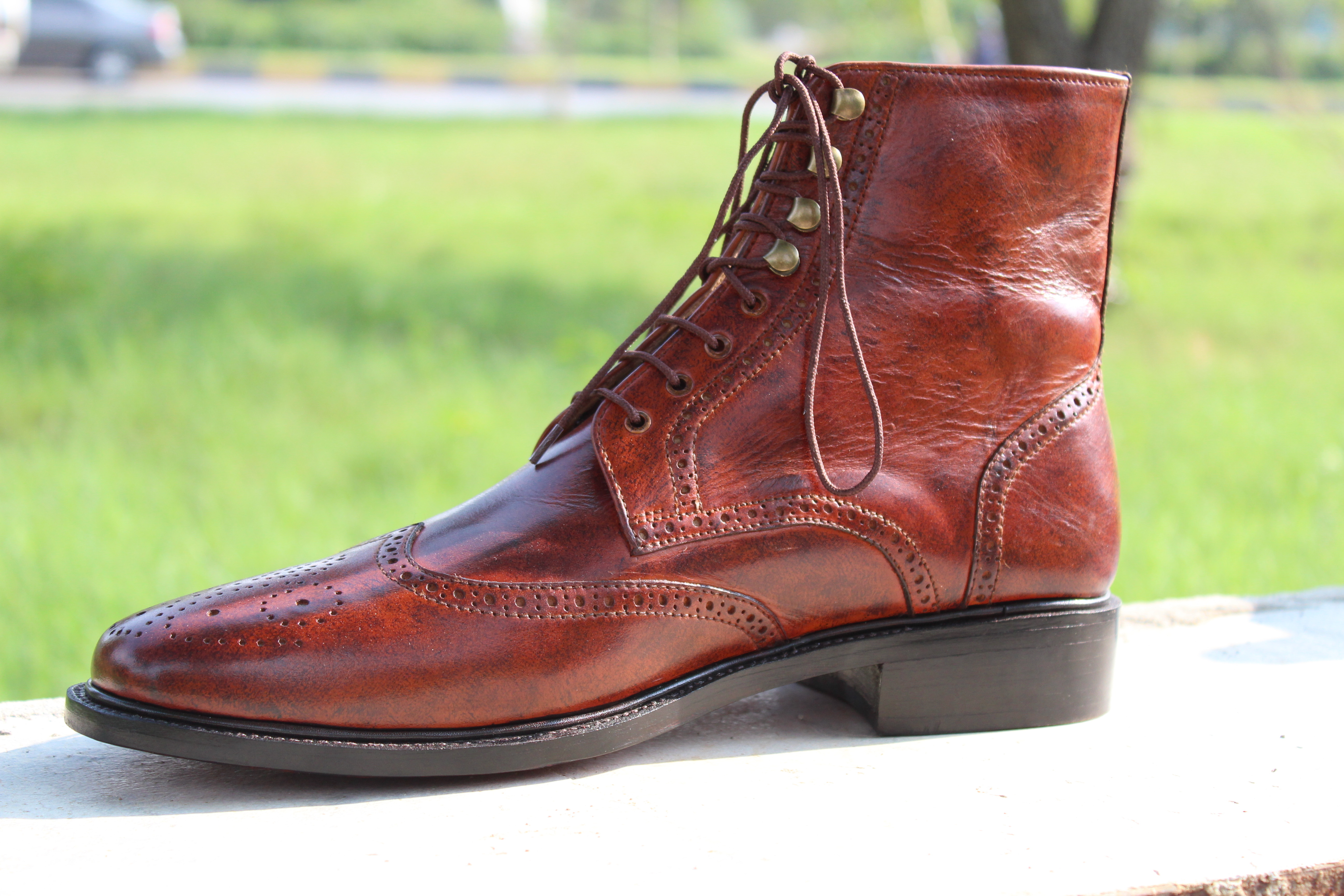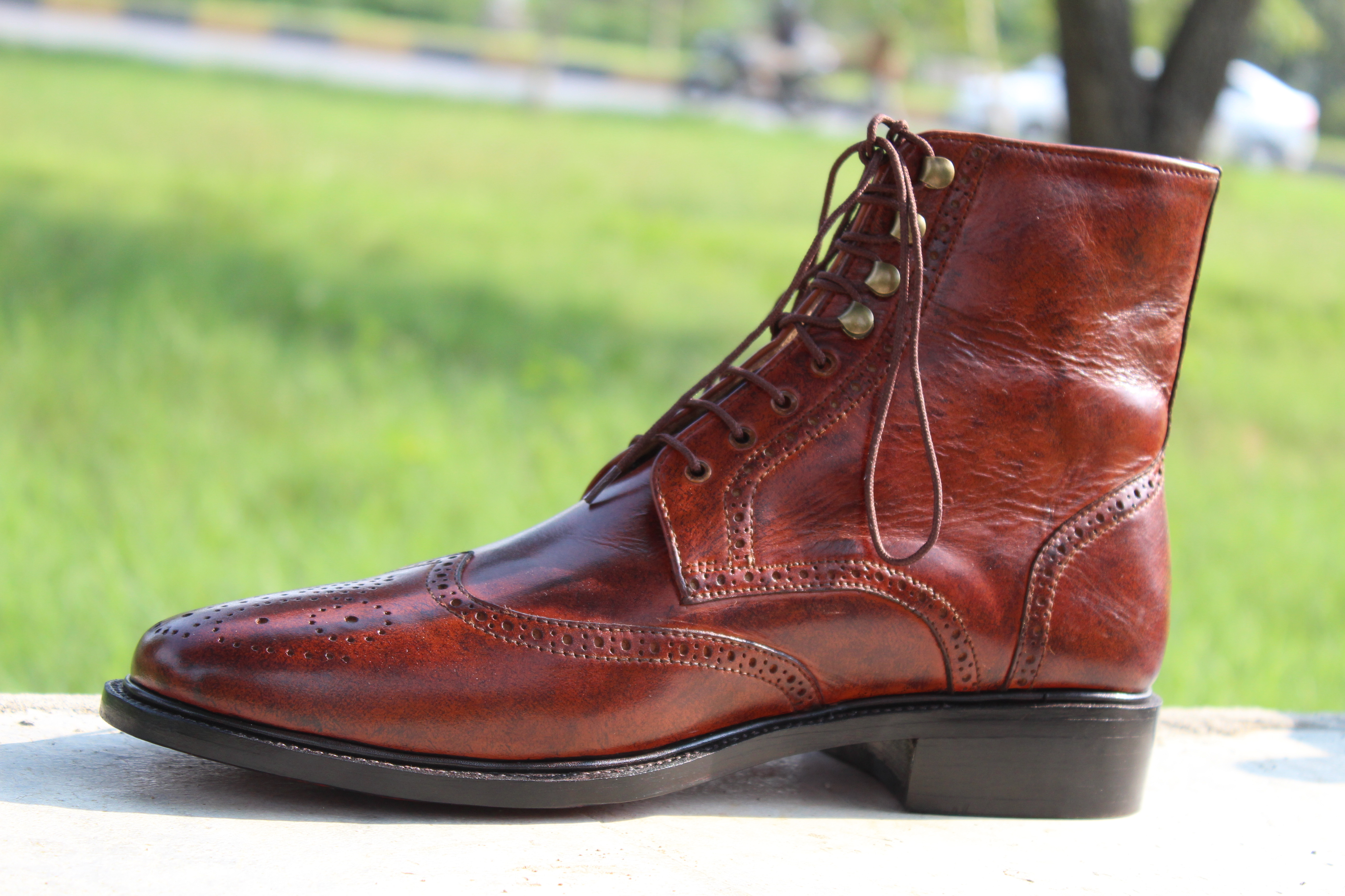 Ankle High Lace up Brown Leather Wingtip Handmade Boot For Men
