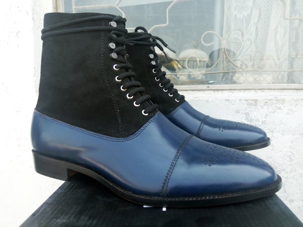 Handmade Ankle High Cap Toe Boots, Dress Men's Two Tone Jean Fashion Boots