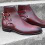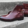 Leather Burgundy Double Buckle Strap Jodhpur Boots