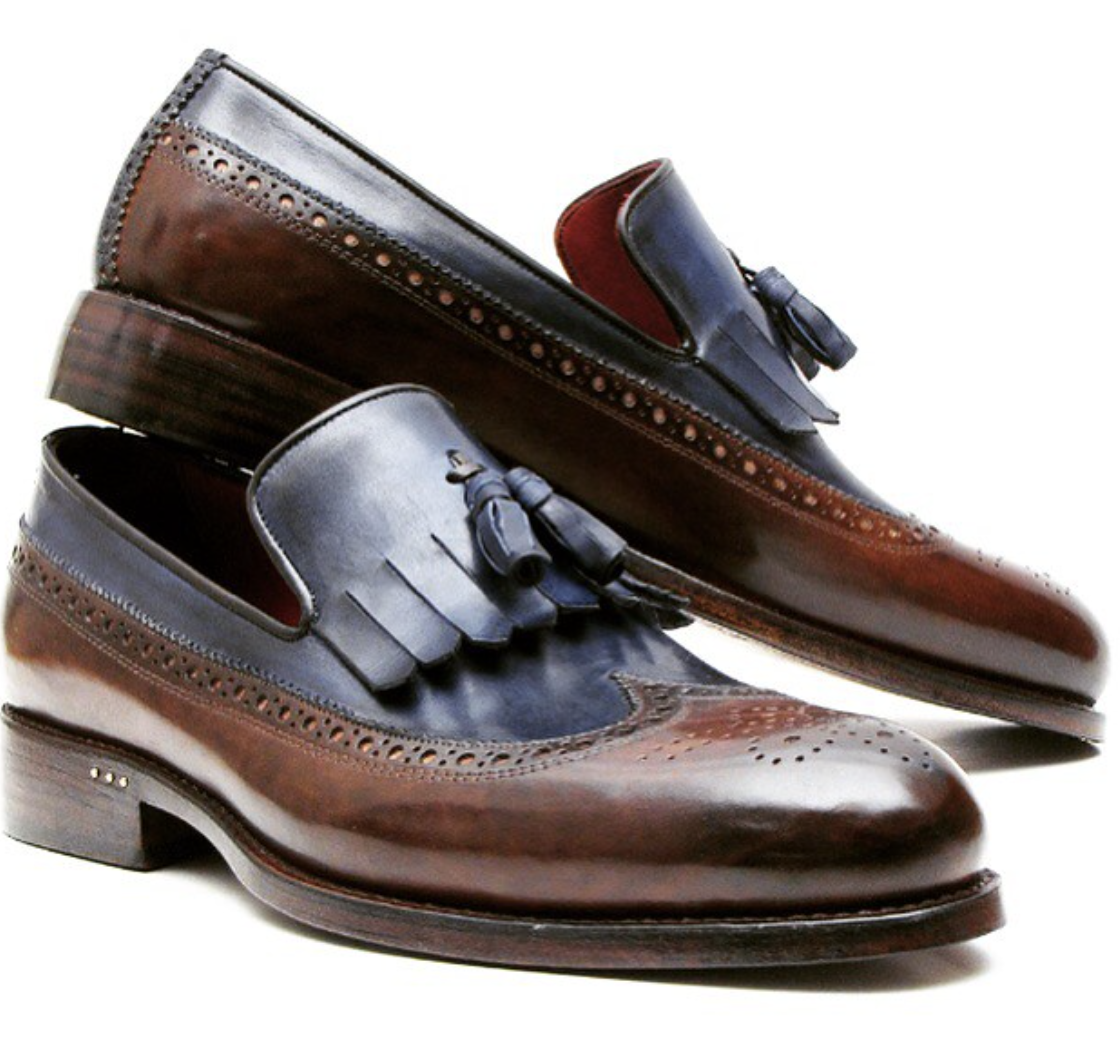 Men,S New Classic Dark Brown and Navy Leather Shoes With Tassels Style, Luxury Shoes