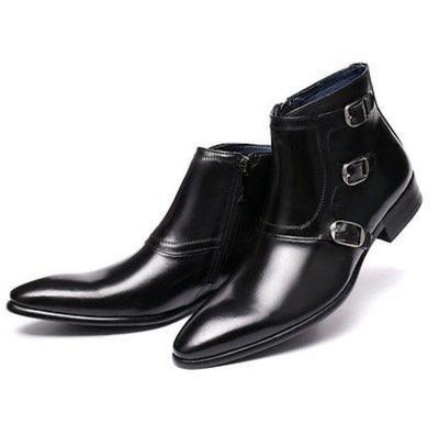 New Handmade Men's Triple Monk Strap Boots, Pointed Toe Leather Boots Foe Men