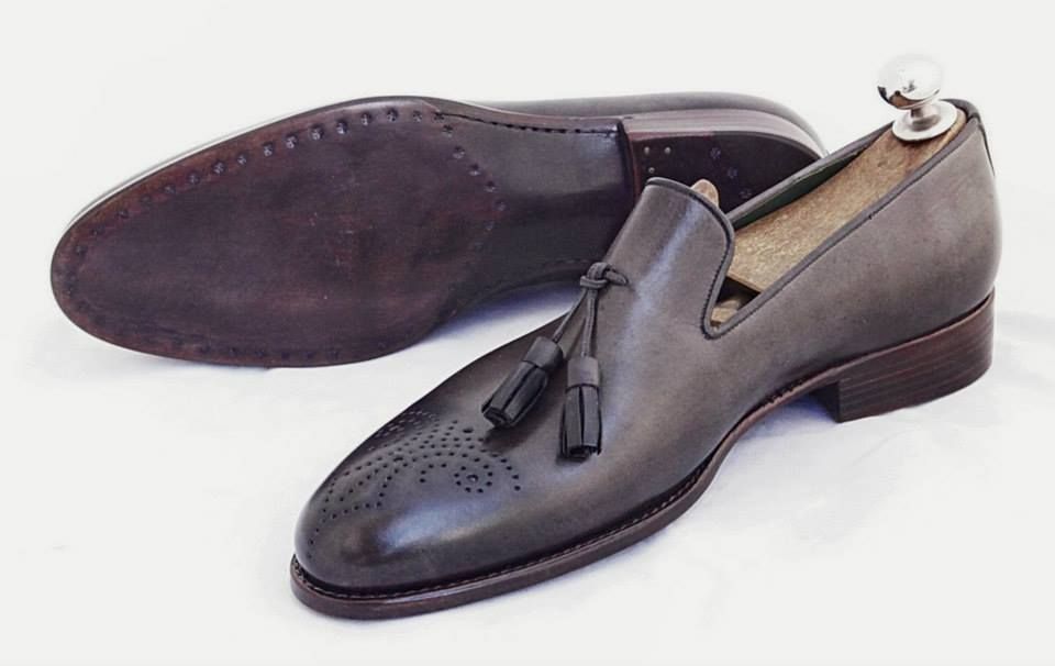 Men's Handmade Gray Leather Oxford Brogue Tassels Moccisains