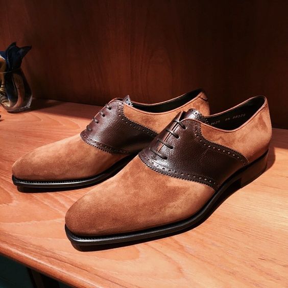 Men's Handmade Brown Suede & Leather Oxford Brogue Lace Up Shoes