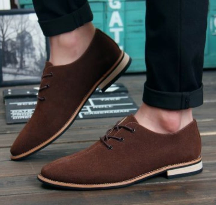 Dark Brown Mid Cut Formal Wear Suede Lace Up Shoes