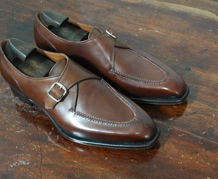 Western Style Brown Single Monk Strap Leather Christmas Shoes