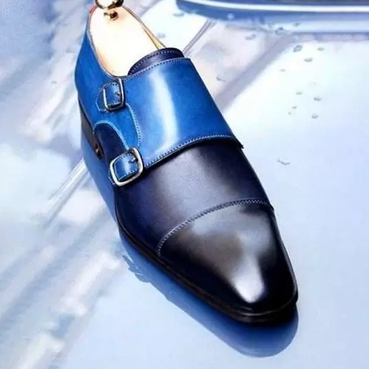 Luxury Two Tone Double Monk Strap Shoes, Handmade Cap Toe Leather Wedding Shoes