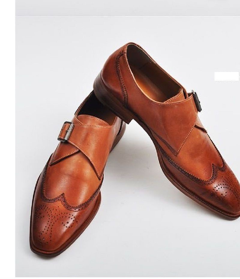 Handmade Men's Premium Brown Patina Leather Shoes Men's Buckle Up Leather Shoes