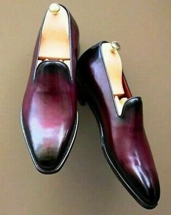 Handmade Men's Premium Burgundy Patina Leather Slip On Loafers Handcrafted Leather