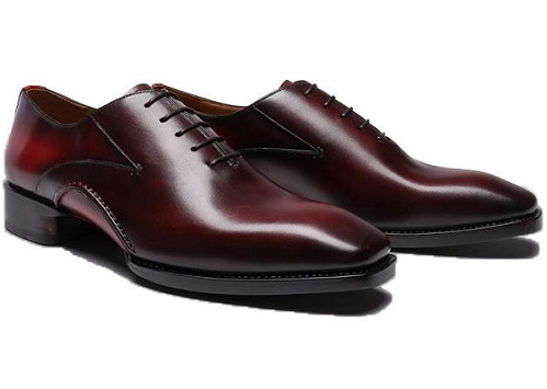 Handmade Trendy Maroon Leather Whole Cut Lace Up Men's Almond Toe Dress Shoes