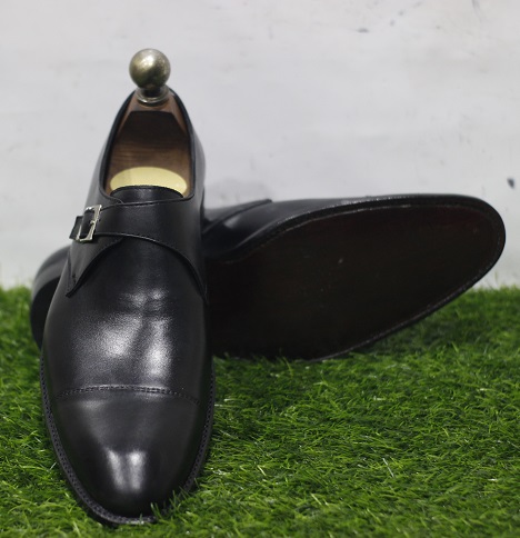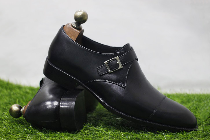 Men's New Handmade Shoes Black Leather Single Monk Strap Stylish Buckle Dress Shoes