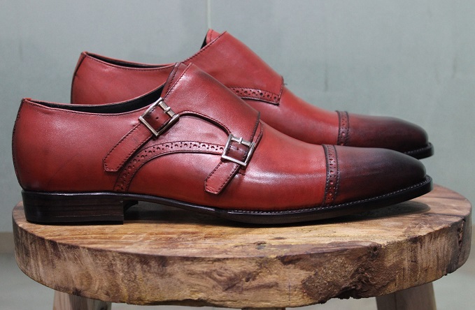 New Mens Handmade Casual Shoes Burgundy Leather Formal Double Monk Strap Classic Boot