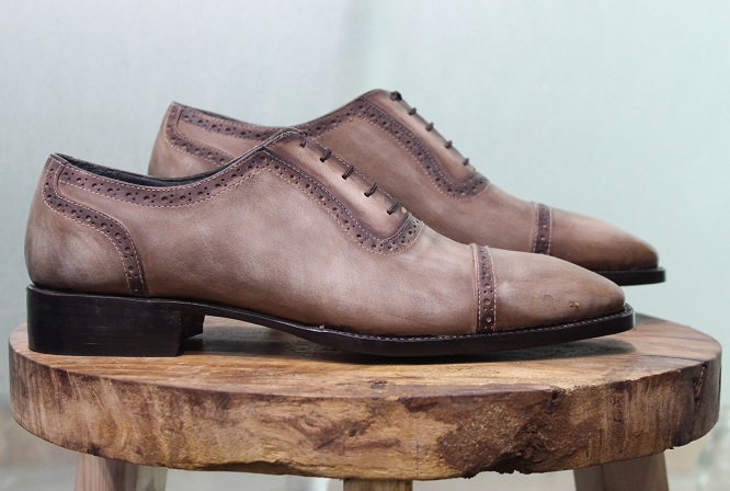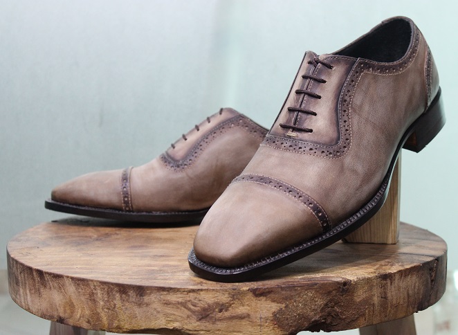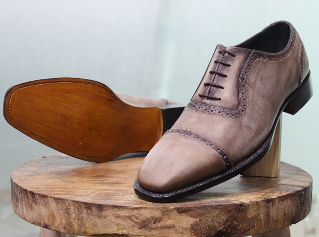 Mens New Formal Shoes Handmade Two Tone Leather Oxford Brogue Lace up Cap Toe Boots