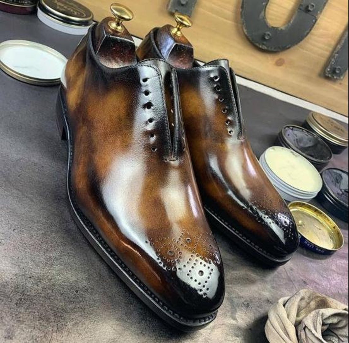 New Handmade Dark Brown Shaded Leather Lace Up Dress & Formal Wear Shoes For Men's