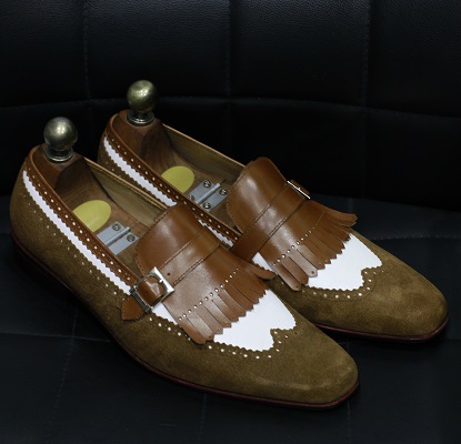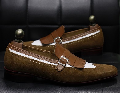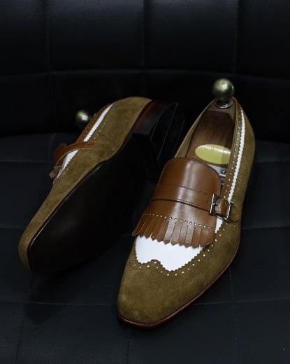 Men's New Handmade Leather Shoes Multi Color Brown White Leather & Suede Single Monk Stylish Wing Tip Dress & Formal Wear Shoes
