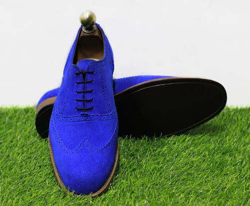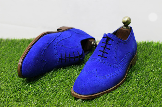 New Men's Handmade Formal Shoes Men's Blue Suede Leather Stylish Lace Up Wing Tip Shoes