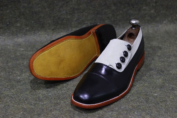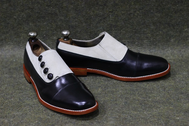 Men's Handmade Formal Shoes Two Tone Black Leather & Beige Suede Button Style Dress & Casual Wear Shoes