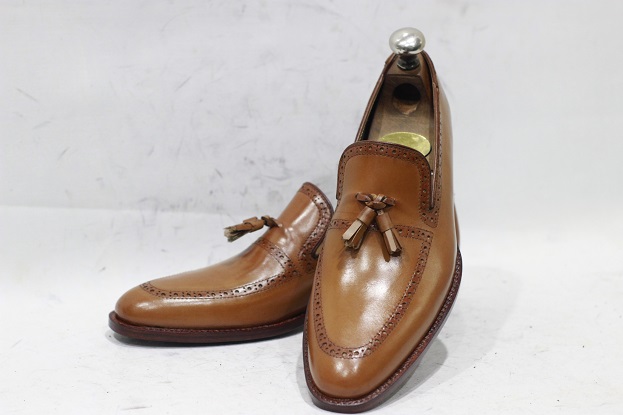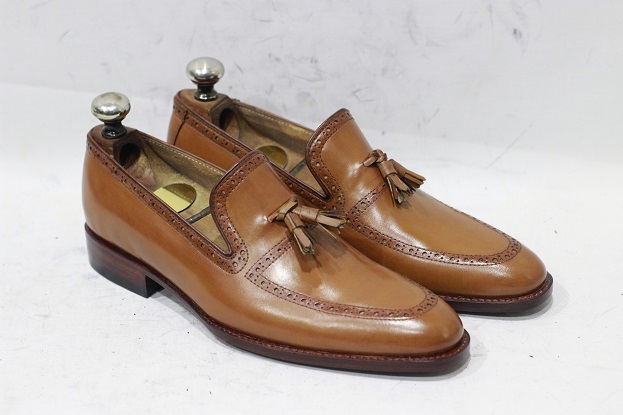 Men's Handmade Formal Shoes Brown Leather Stylish Teasels Slip On Loafer Dress & Casual Wear Shoes