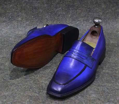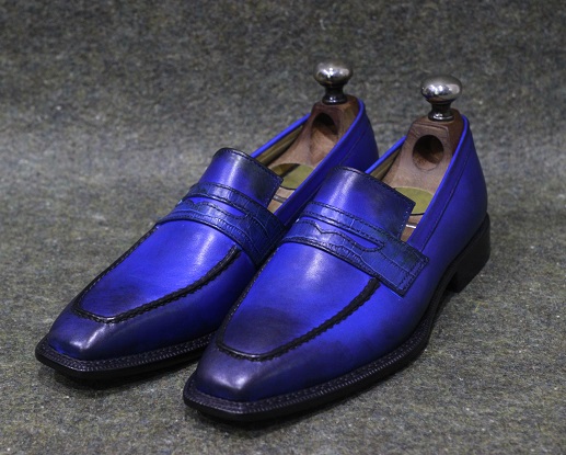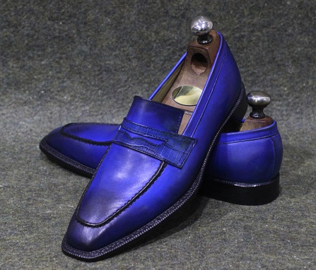Men's New Handmade Formal Leather Shoes Blue Leather Loafers Stylish Slip On Dress & Casual Wear Shoes