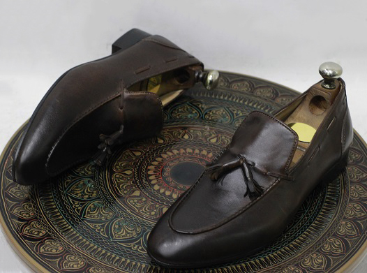 New Men's Handmade Formal Leather Shoes Brown Leather Loafers Slip On Teasel Moccasin Shoes