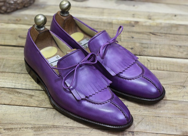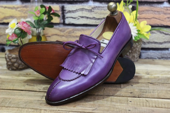 Men's New Handmade Leather Shoes Purple Leather Bespoke Stylish Lace Slip On Loafers Dress & Formal Wear ShoeS