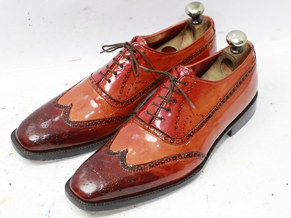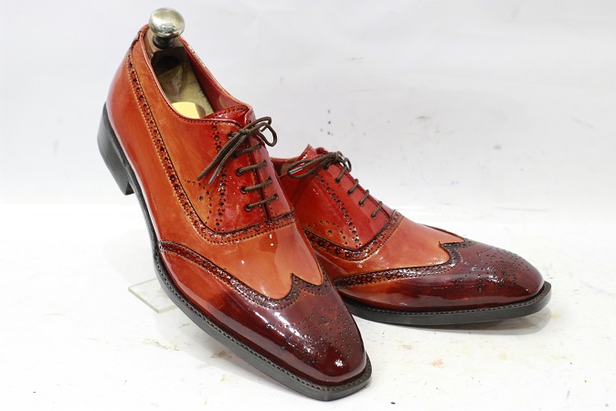Men's Handmade Two Tone Tan Brown Leather Lace Up Stylish Wing Tip Style Dress & Casual Wear Shoes