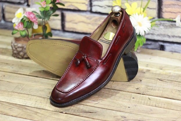New Men's Handmade Burgundy Leather Teasels Style Loafer Slip On Stylish Loafers Dress & Formal Shoes