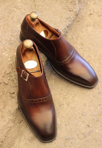 Men's Handmade Dark Brown Leather Two Tone Single Monk Strap Stylish Dress & Casual Wear Shoes