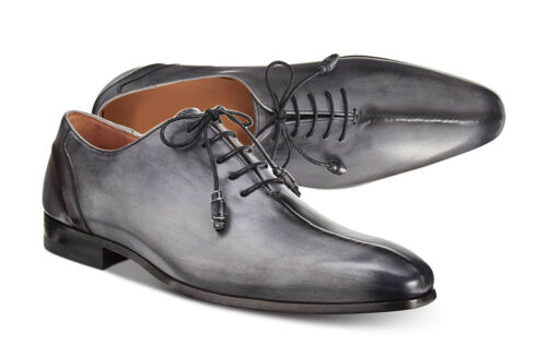 New Handmade Men's Gray Color Leather Stylish Crop Toe Lace Up Style Derby Dress & Formal Shoe