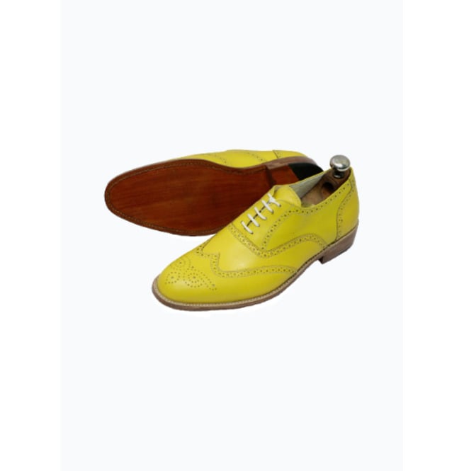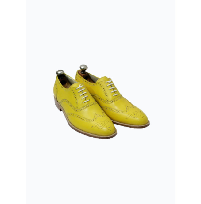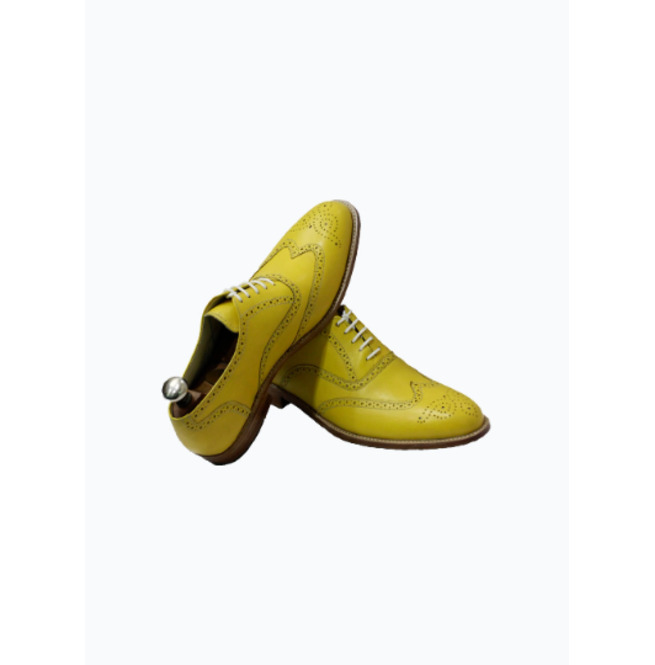 Men's Handmade Yellow Leather Wingtip Lace up Oxford Wedding Dress Shoes