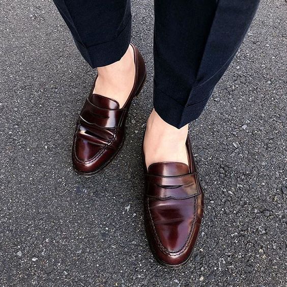 Handmade New Genuine Moccasin Burgundy Cavalry Calf Loafer Formal Dress Shoes