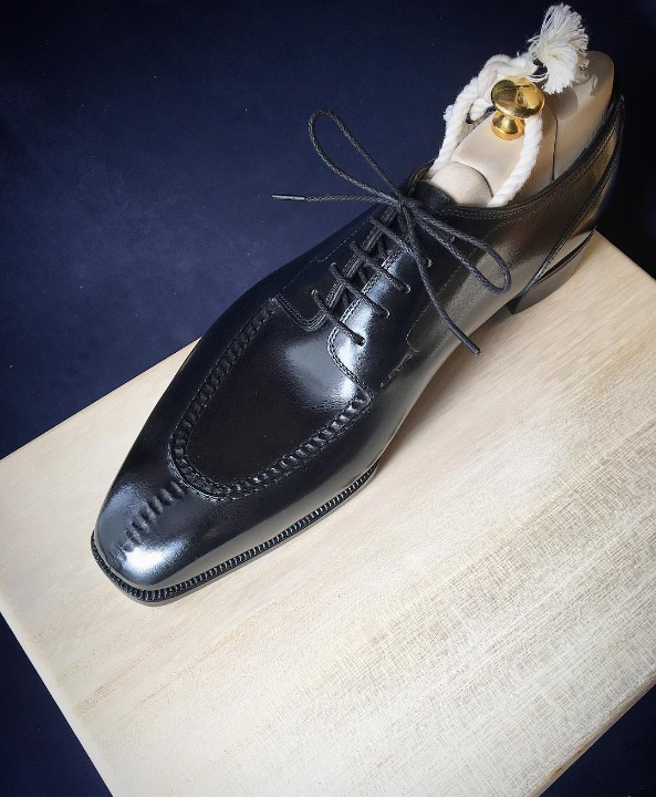 Handmade Men Black Calf Leather Oxford Lace up Dress Shoes
