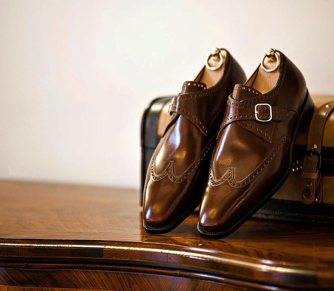 Classic and Unique Luxury Oxford Single Monk with Silver Buckle Wingtip Dress Shoes