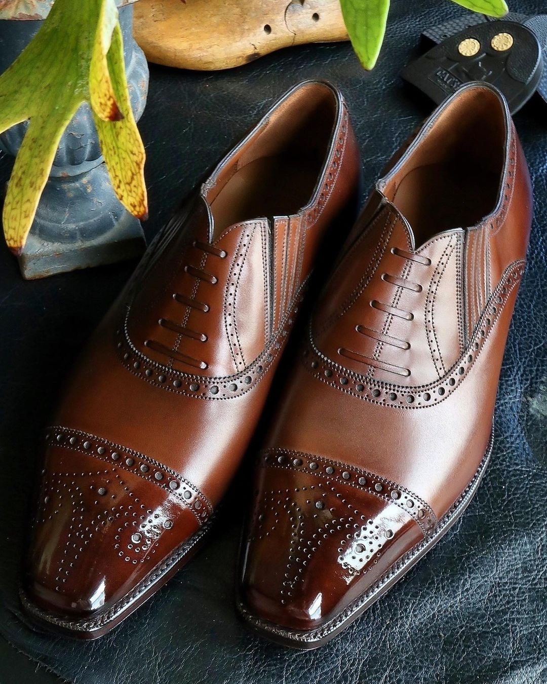 Handmade Brown Chelsea Style Lace up Shoes, Mens Dress Shoes