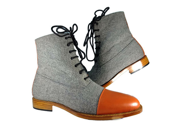 Magnificiant Gray Tweed Orange Tone Cap Toe Leather Men High Ankle Lace Up Boots
