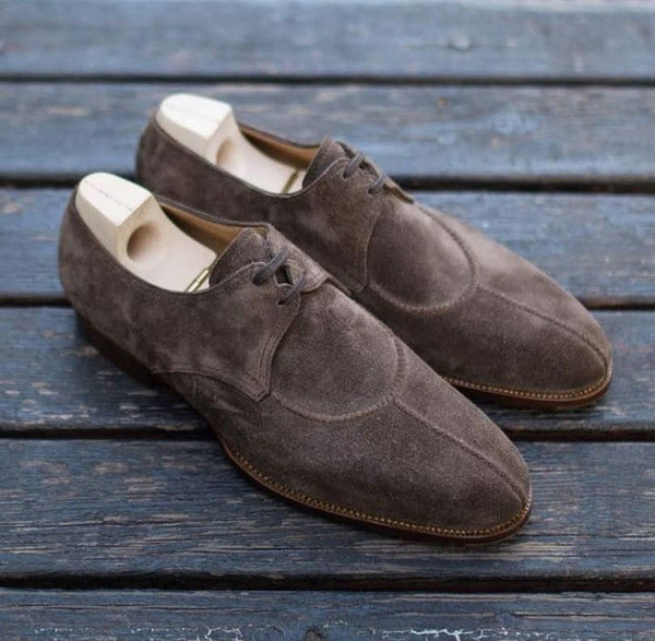 Brown Suede Leather Vintage Handcrafted Men Lace Up Classical Customised Shoes
